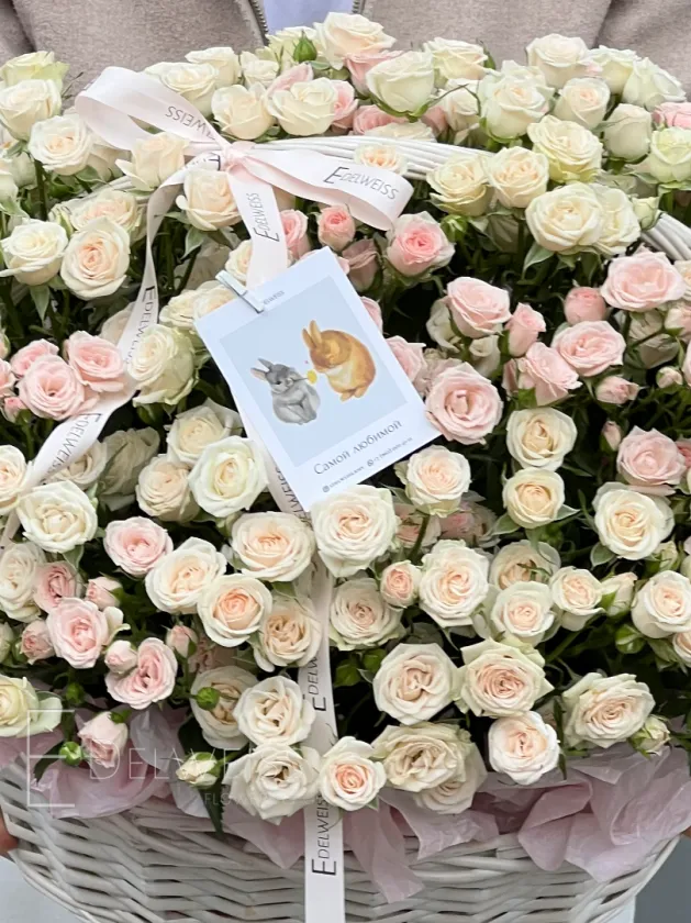 Корзина из 51 кустовой розы